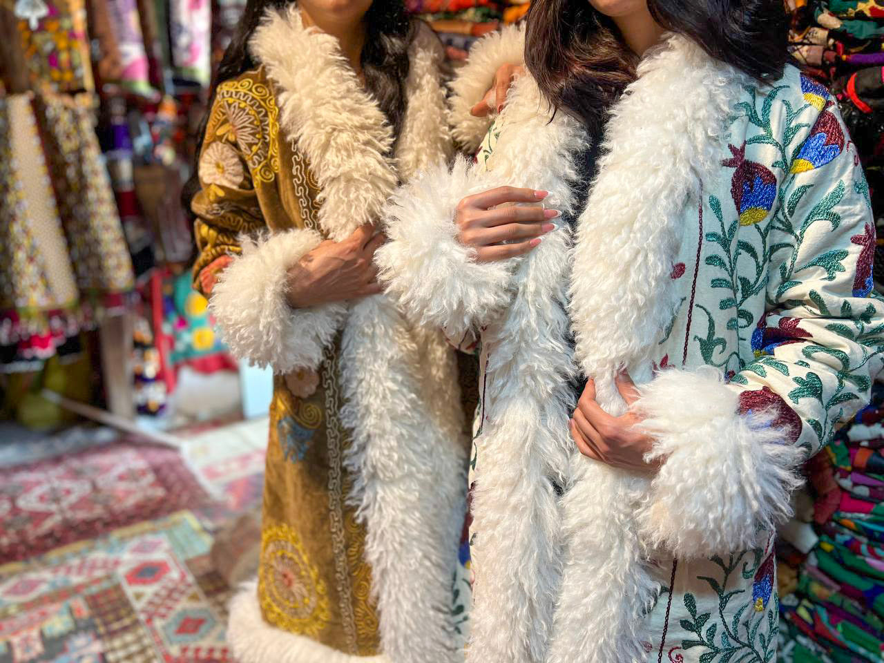 Each coat is crafted from antique or high quality fabrics and lined with sustainable faux fur, meticulously handcrafted mostly by Afghan women artisans. This collection transforms exceptional materials into one of a kind coats that blend tradition, artistry, and modern elegance.
